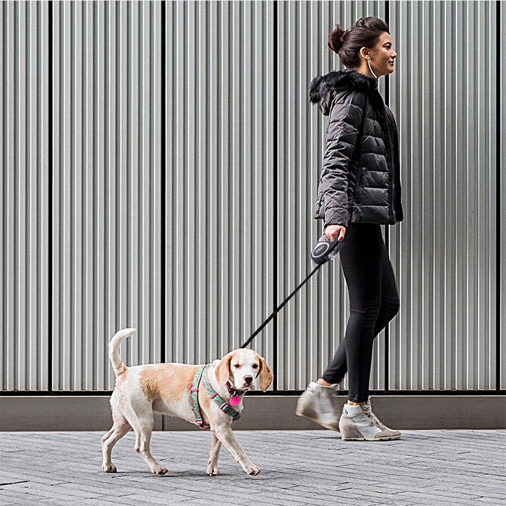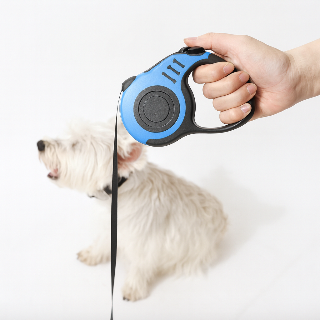 Our retractable dog leash is designed to make every walk effortless. Simply clip the heavy-duty clasp to your dog’s collar or harness, and you’re ready to go. With the press of a button, you can extend the leash up to 3 or 5 meters, giving your pup the freedom to explore while keeping you in control. When you need to shorten the distance, the brake and lock system lets you instantly stop the leash at any length. Release the button, and it retracts smoothly and tangle-free. Combined with an ergonomic handle and durable nylon tape, every walk becomes safer, more comfortable, and stress-free.